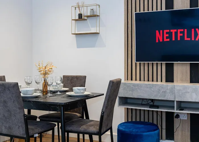 Het Station Manchester Piccadilly bevindt zich ook binnen een autorit van 20 minuten vanaf dit 2-badkamer appartement.
